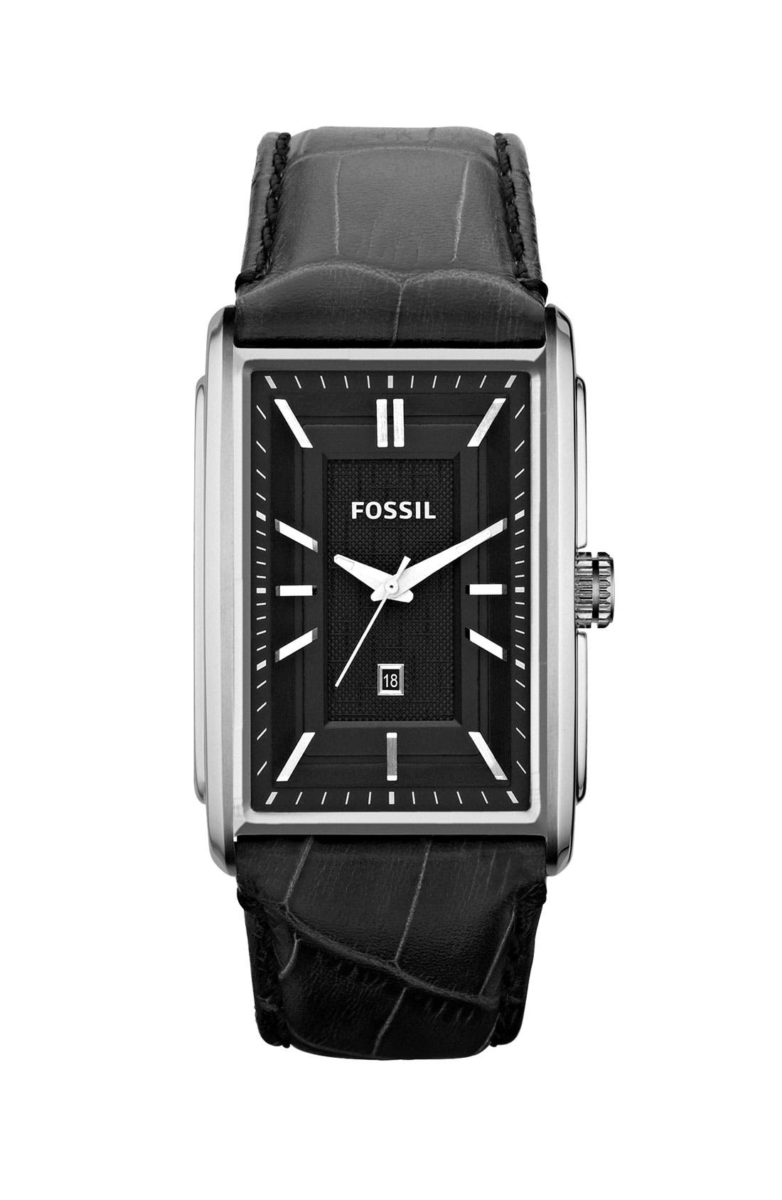 Fossil 'Truman' Rectangular Leather Strap Watch, 33mm x 49mm Nordstrom